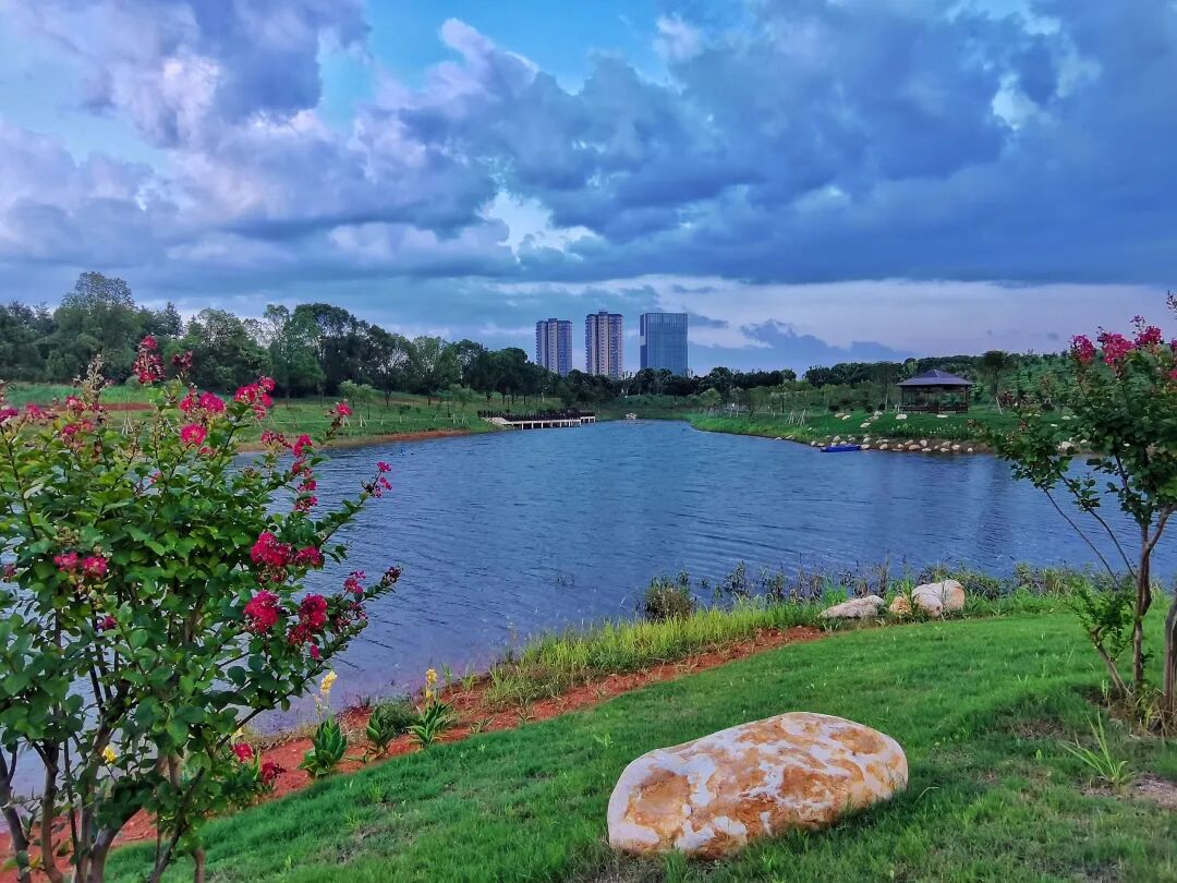 沿着环湖跑道,步伐稍微可以放慢,一边欣赏着盛开的花儿、灵动的苇草,一边沉浸在如诗如画的湖畔景致里,好不惬意。